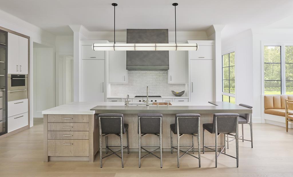 Naturally inspired accents of crafted stone, metal, and wood provide texture and detail within the design. Hand-hewn elements in complementing tones of saturated colors add depth and definition against the organic color palette. Incorporating these features as lighting fixtures, cabinetry hardware, or functional décor items provides visual interest without disrupting the harmony of the simplistic design.