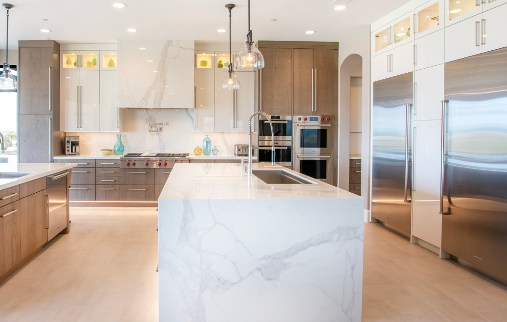 The homeowners asked the designer of this kitchen to create a larger, modern space that would “entertain a crowd.” A light color palette featuring Vanguard MDF in Nordic White was selected to brighten up the space and reflect the coastal view just outside the kitchen windows. The previous space underutilized...