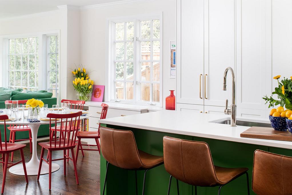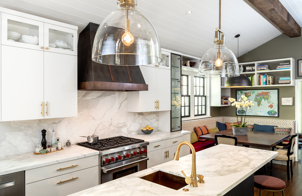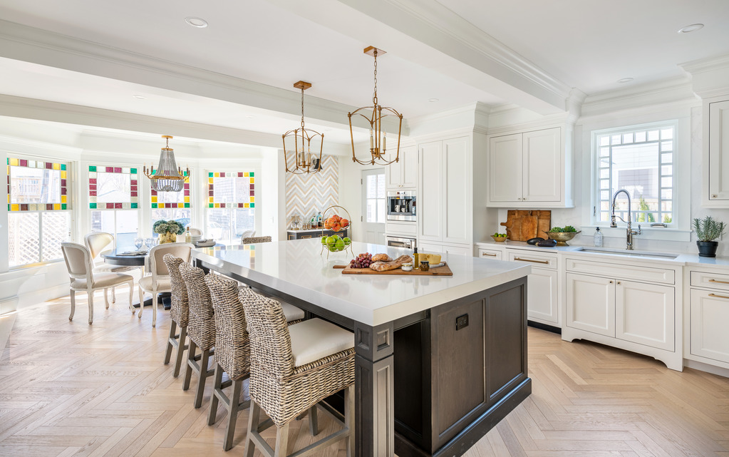 Layering color, patterns, and textures enliven kitchen design with a sense of intrigue. Contrasting design styles and unexpected elements guide the eye around the room as new details are revealed with every glimpse.